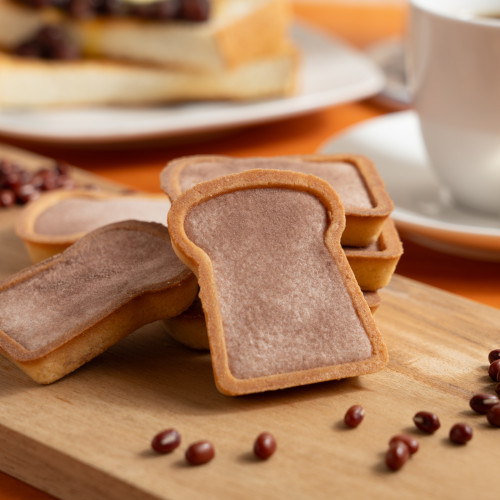 小倉トースト発祥の店正統継承店「喫茶まつば」監修。サクサクタルトに小豆味とホワイトチョコの2層のチョコクリームを乗せ、小豆パウダーを振りかけ焼き上げたトースト型のタルトです。
