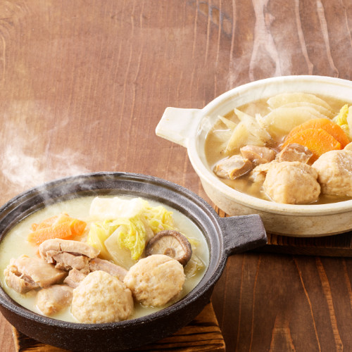 温めるだけで完成する具入りの簡単レトルト鍋。鶏の旨味が詰まった博多名物「博多水炊き」と出汁の旨味が絶妙な「旨塩ちゃんこ」の2種類をお届けいたします。