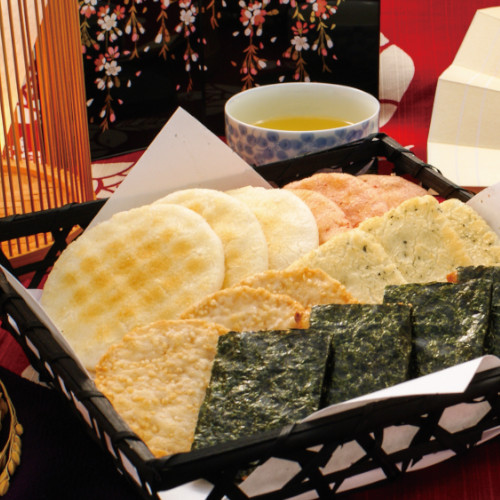 ■内容量:のり巻あられ×6枚、柚子胡椒煎餅×6枚、海老カレー煎餅×6枚、青さ海苔煎餅×4枚、海老塩煎餅×3枚、サラダ煎餅×3枚