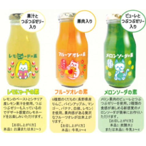 コトブキフルーツパーラーは炭酸や牛乳で割るだけで、本格的な喫茶店メニューをお楽しみいただける、ドリンクベースのシリーズです。