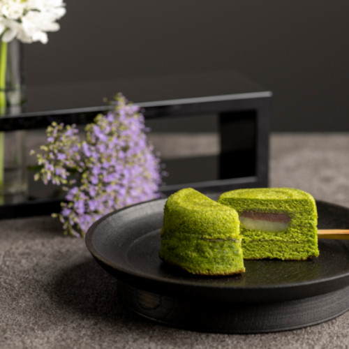 善光寺バウムは公許の一品で、善光寺の梵鐘を模し、香り高い国産抹茶を使用した生地に、北海道産小豆で練り上げた特製こしあんと栗を包み込んだお菓子です。